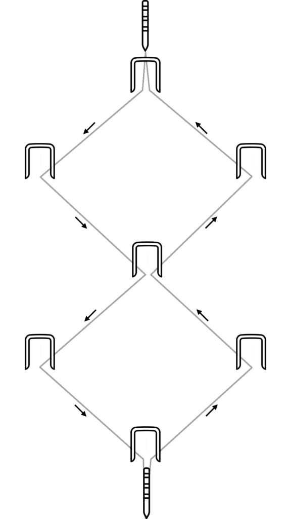 2. Een team wint het spel wanneer het als eerste het volledige parcours heeft afgerond in de juiste volgorde, zoals afgebeeld in de illustratie hiernaast.
